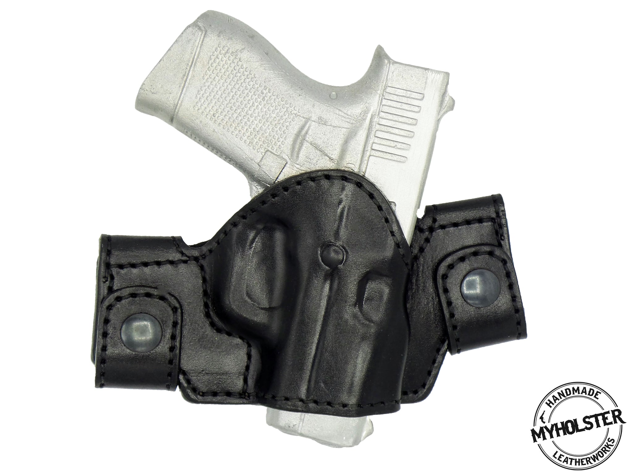 GLOCK 43 OWB Leather Side Snap Belt Right Hand Holster