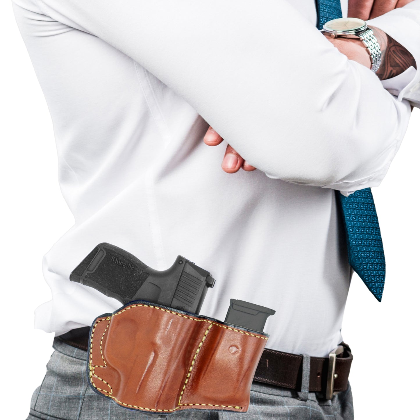 A holster with a magazine pouch is a type of holster that includes a separate pouch for carrying an additional magazine or ammunition. This type of holster is designed to provide added convenience and accessibility for firearms users who need to reload quickly and easily in high-stress situations.